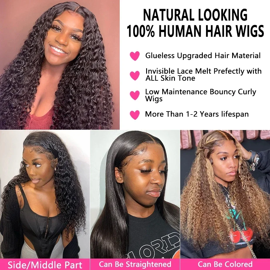 13x4 Hd Lace Frontal Wig 13x6 Curly Human Hair Wigs Water Wave Human Hair Wig 30 40 Inch Loose Deep Wave Brazilian Choice Black