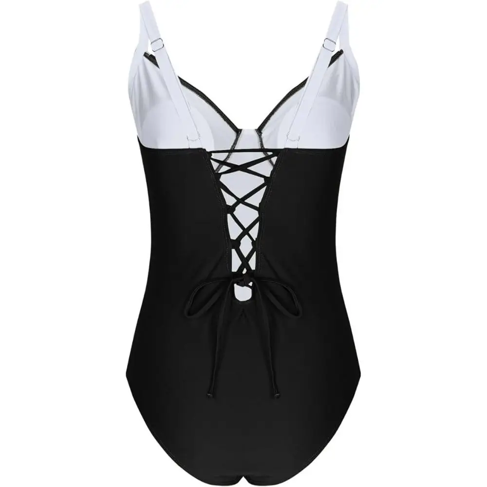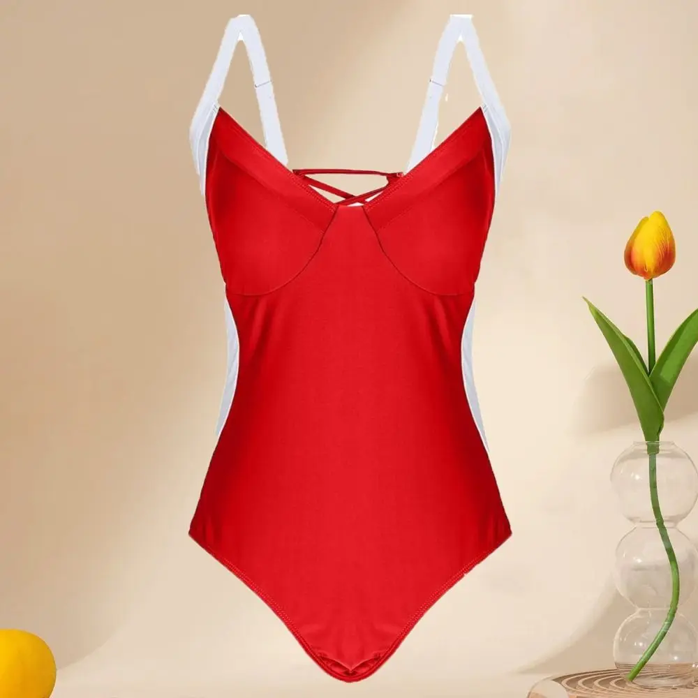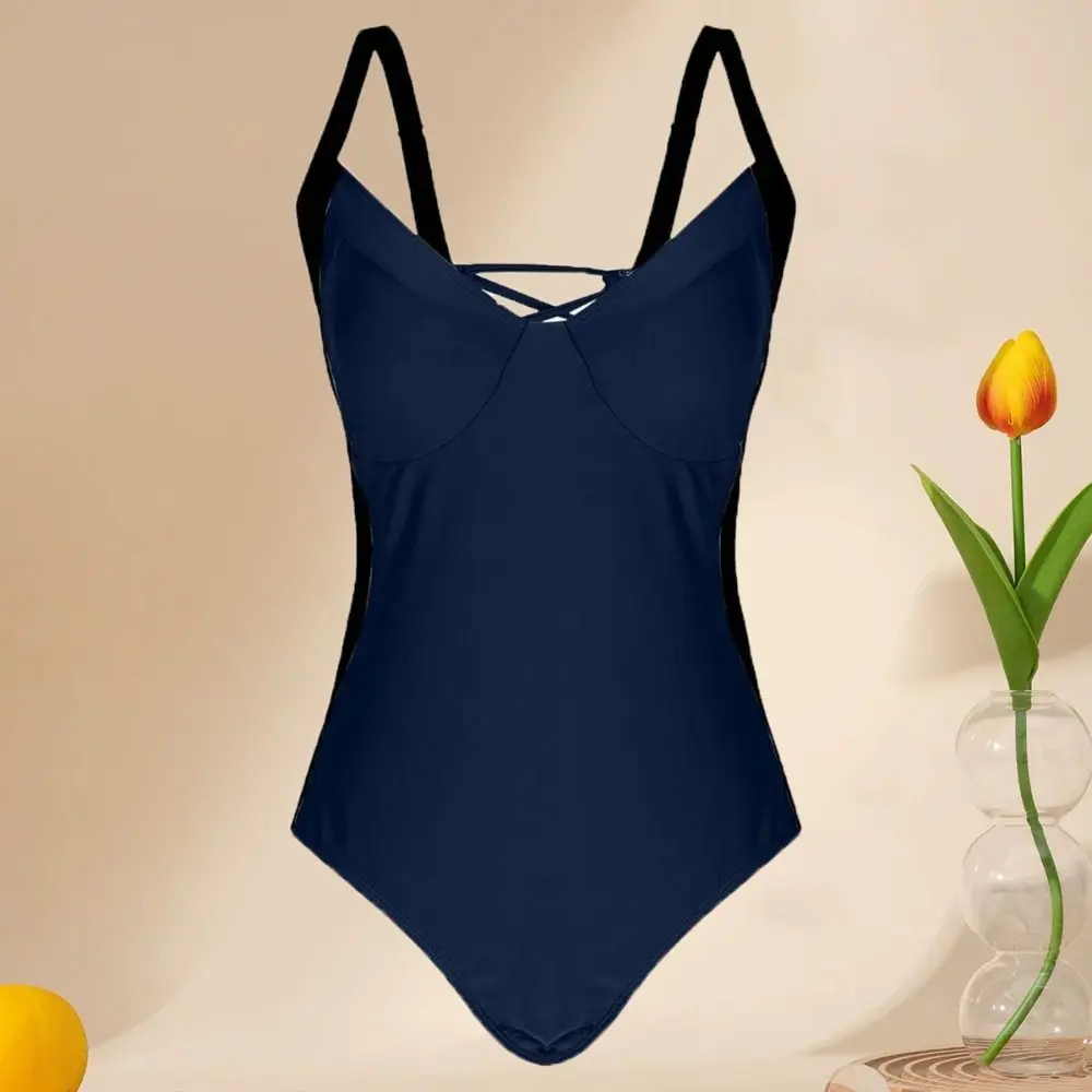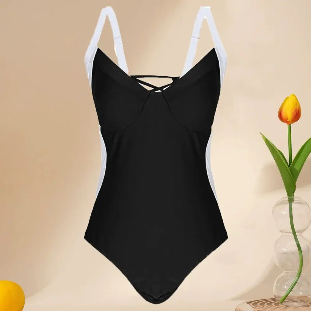 Fashion Patchwork Bodysuit Swimsuit Slim Fit Hollow Bathing Swimwear V-neck Beachwear Clothing Jumpsuit Bikini Ladies